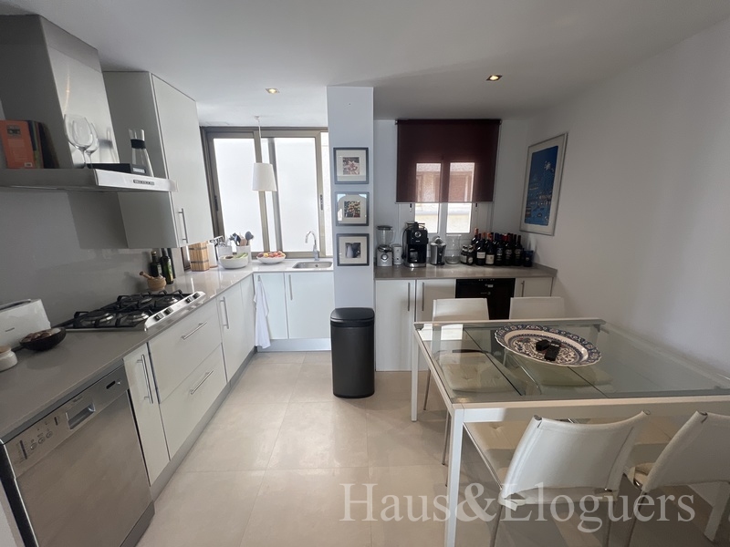 La preciosa terraza es, sin duda, uno de los grandes atractivos de esta propiedad: un rincón privilegiado para disfrutar de desayunos con vistas infinitas, atardeceres mágicos, la salida del sol y, por la noche, dejarse cautivar por la luna reflejándose sobre el mar.