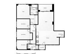The property offers a well-balanced and functional layout. It features a large open-plan living and dining area with an American-style kitchen of approximately 40 sqm, designed for comfortable everyday living and family life. The apartment also includes a separate laundry room, four bedrooms, one full bathroom and one additional bathroom with shower, ensuring convenience for larger households.